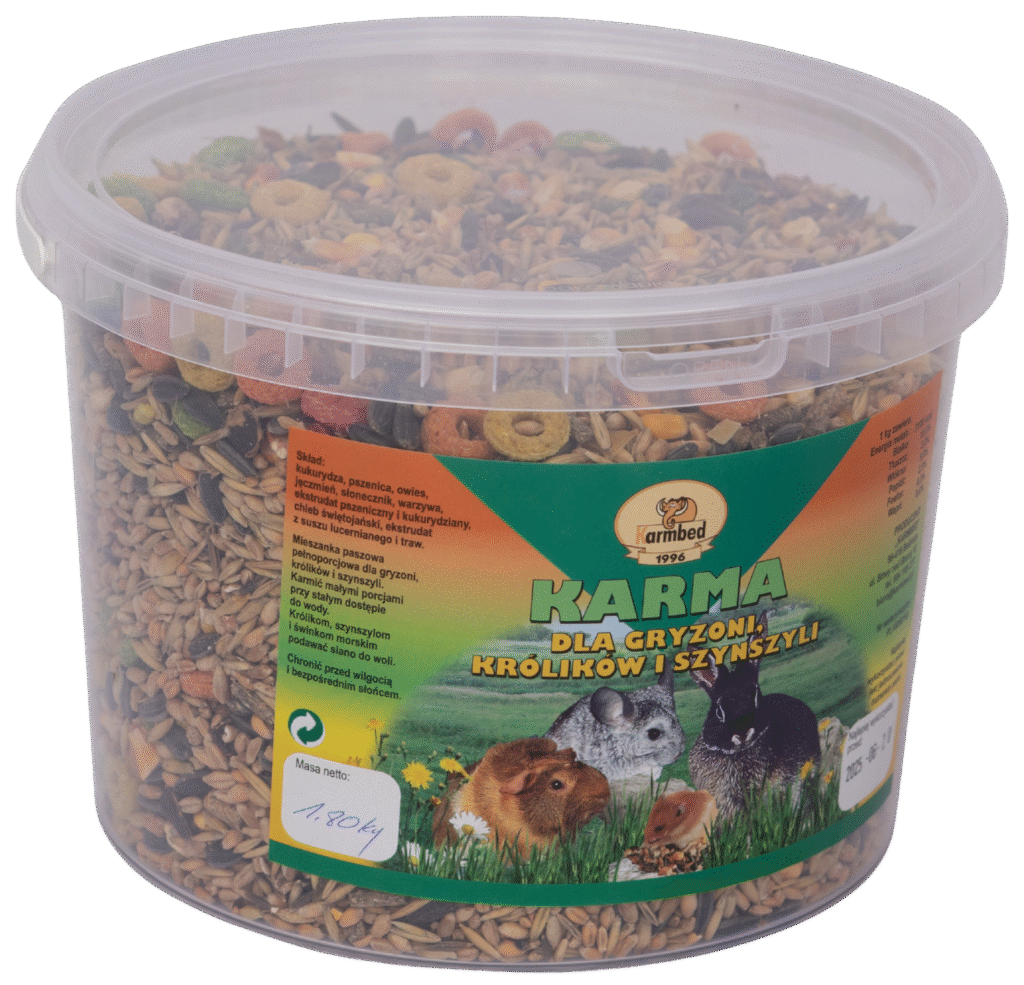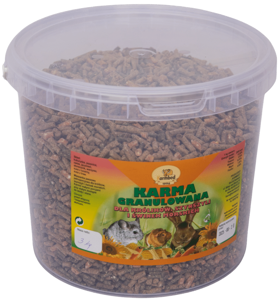 Karma granulowana dla królików, szynszyli i świnek morskich.