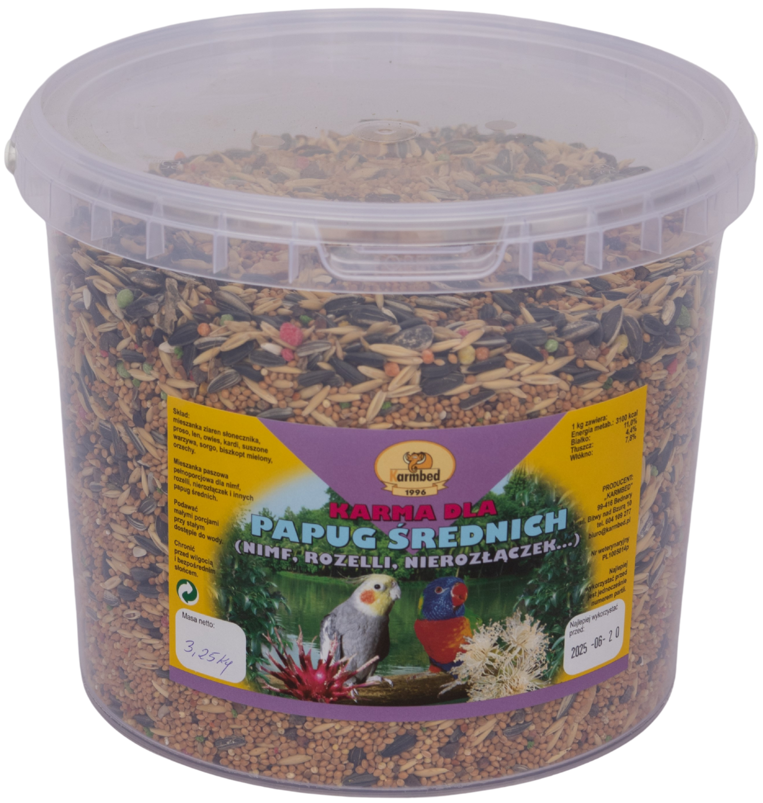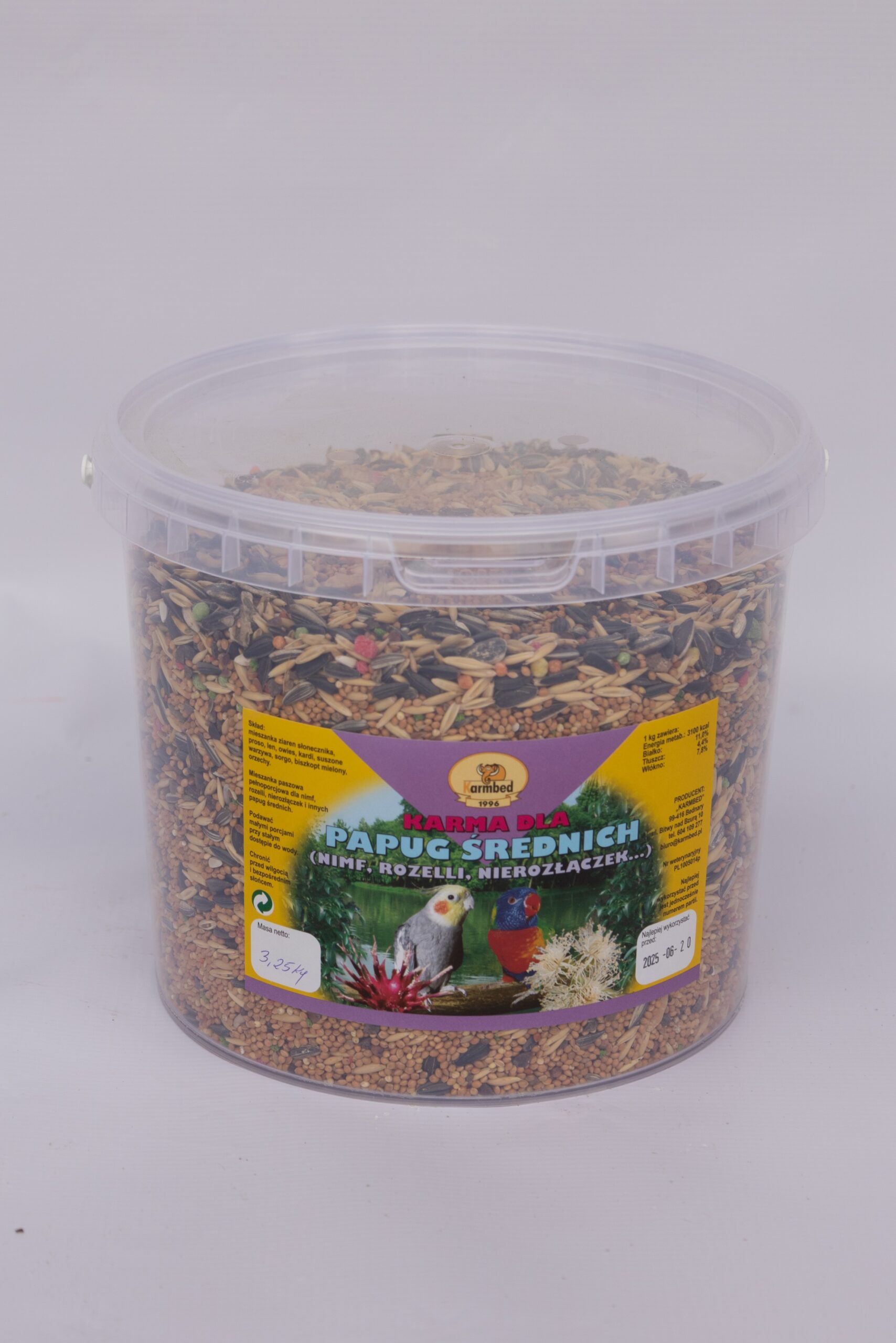 Mieszanka paszowa pełnoporcjowa dla papug średnich (nimf, rozelli, nierozłączek)